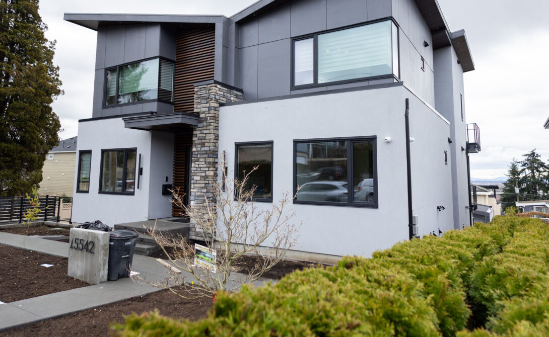 To extend the living area beyond the interior, the home features multi-slide glass doors that open wide to the outdoor patio. These large-format systems blur the line between inside and out, making the space ideal for entertaining while maintaining energy efficiency when closed. Even in the Pacific Northwest climate, the homeowners can enjoy a true indoor-outdoor experience.